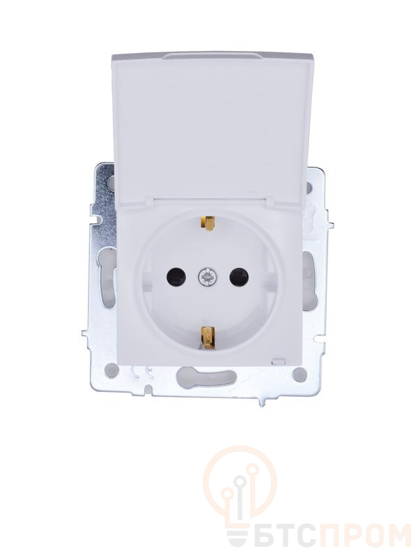 Конструкция включает одну посадочную место стандарта СП (евро) с заземляющим контактом, рассчитанную на ток 16А и напряжение до 250В. Корпус и защитная крышка изготовлены из ударопрочного ПБТ-пластика, механизм — белого цвета. Наличие крышки и уплотнительных элементов гарантирует безопасность при эксплуатации на улице, в гаражах, мастерских, на террасах и в других сырых помещениях.