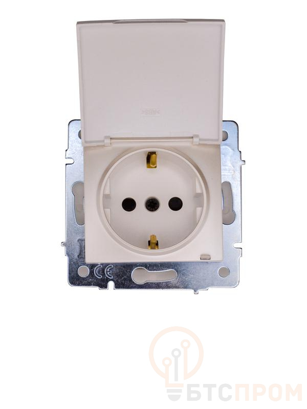 Устройство оснащено одним посадочным местом (1 модуль) и имеет степень защиты IP44, что обеспечивает эффективную защиту от брызг воды и попадания твердых частиц размером более 1 мм. Наличие защитной крышки из ударопрочного полибутилентерефталата (ПБТ) дополнительно оберегает контакты от влаги и пыли в нерабочем состоянии. Розетка рассчитана на номинальный ток 16А и напряжение до 250В, имеет заземляющий контакт для безопасной эксплуатации мощной бытовой техники.