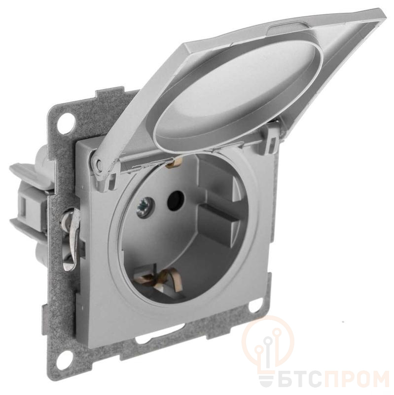 Розетка 1-м СП Bravo 16А 250В с заземл. защ. шторки с крышкой механизм серебр. GUSI С10Р91-004 фото в каталоге от BTSprom.by
