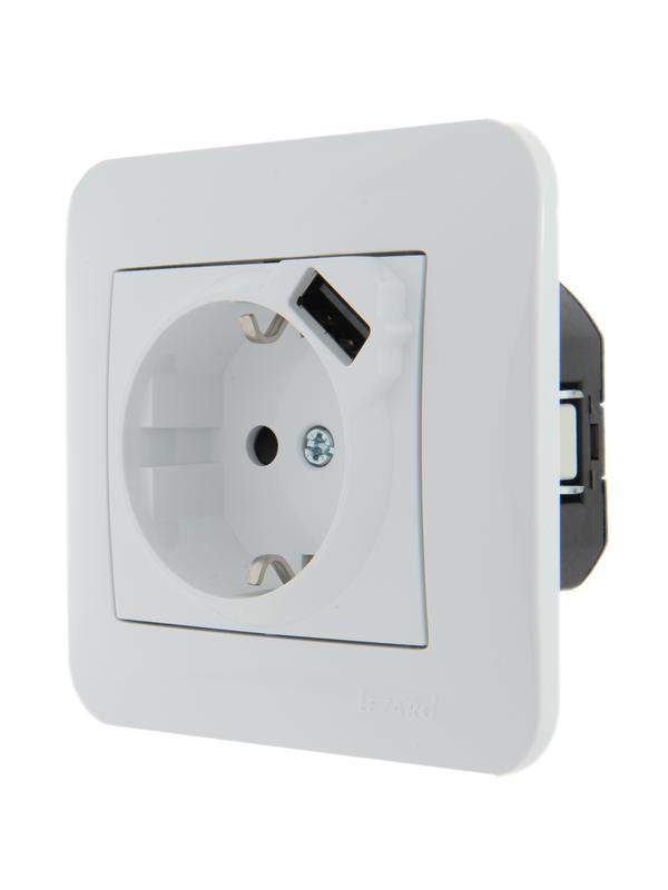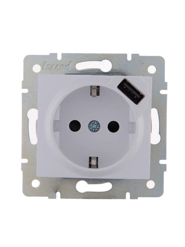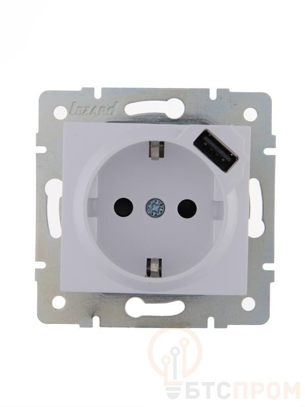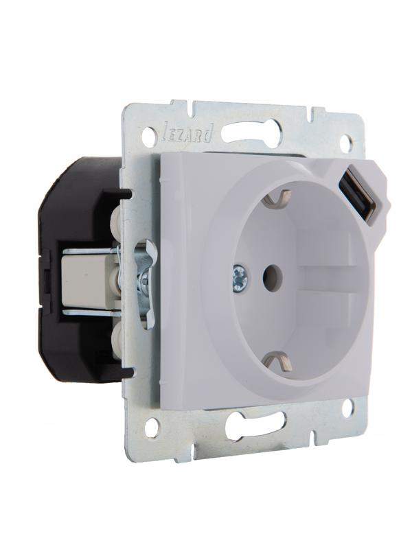 Розетка 1-м СП Vesna с заземл. с заряд. устройством USB механизм бел. LEZARD 742-0288-181