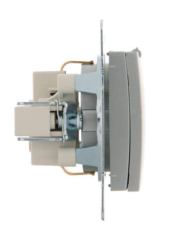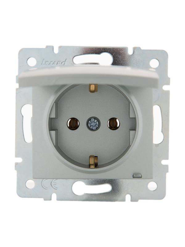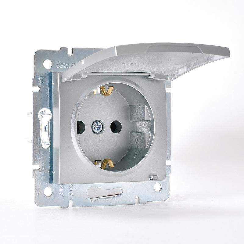 Розетка 1-м СП Karina с заземл. с крышкой термопласт механизм матов. серебр. LEZARD 707-4388-123B фото в каталоге от BTSprom.by