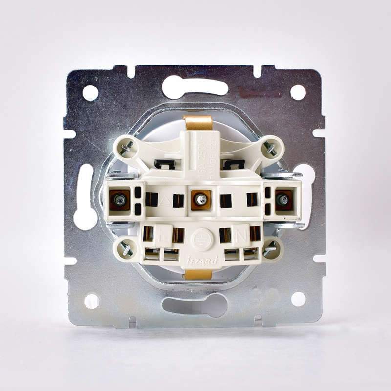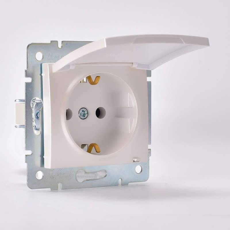 Розетка 1-м СП Karina с заземл. с крышкой термопласт механизм жемчуж./бел. перламутр. LEZARD 707-3088-123B