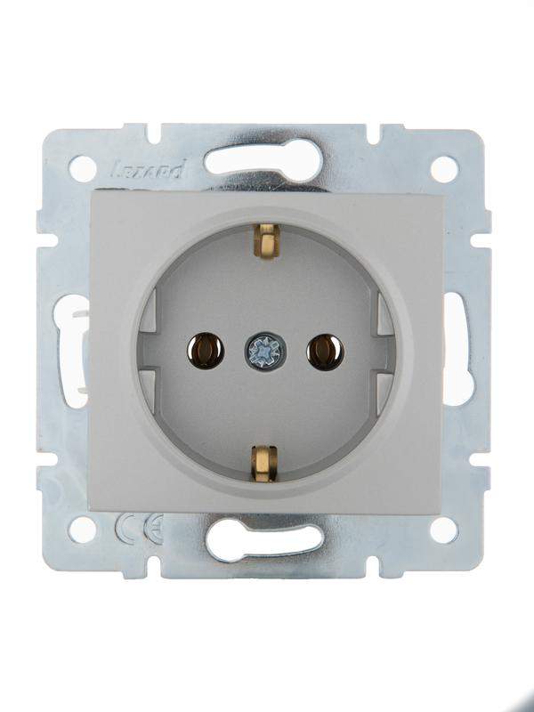 Розетка 1-м СП Karina с заземл. термопласт механизм матов. серебр. LEZARD 707-4388-122B фото в каталоге от BTSprom.by