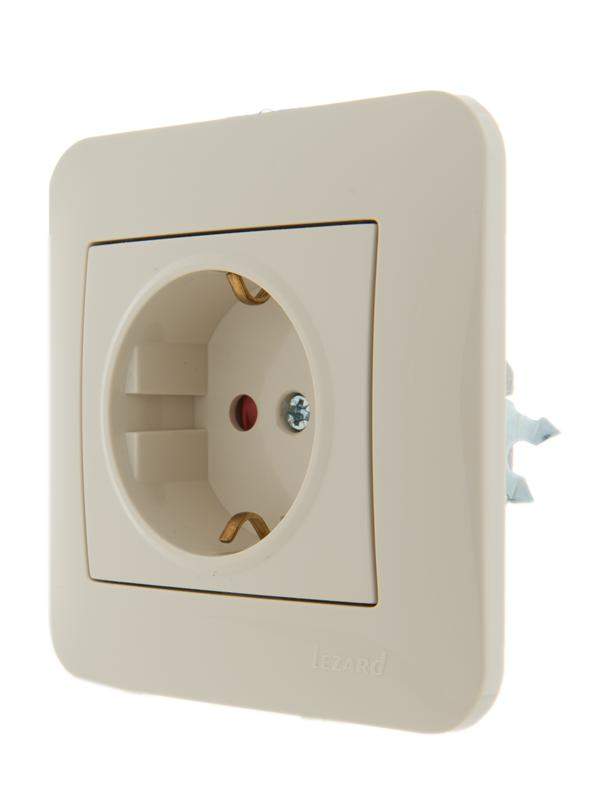 Розетка 1-м СП Karina с заземл. защ. шторки керамика механизм крем. LEZARD 707-0388-124 фото в каталоге от BTSprom.by