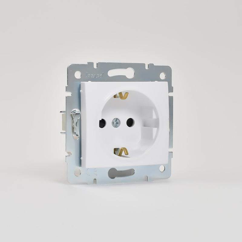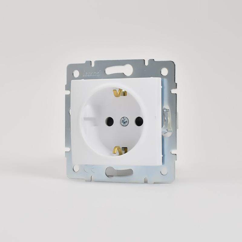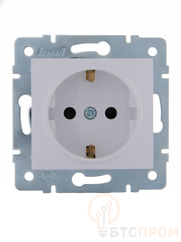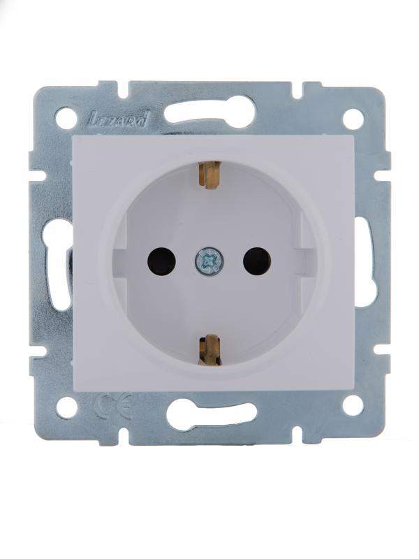 Розетка 1-м СП Karina с заземл. защ. шторки термопласт механизм бел. LEZARD 707-0288-124B фото в каталоге от BTSprom.by
