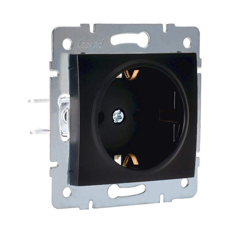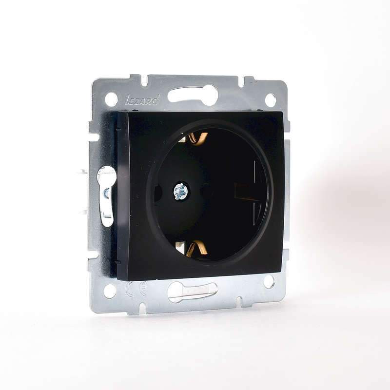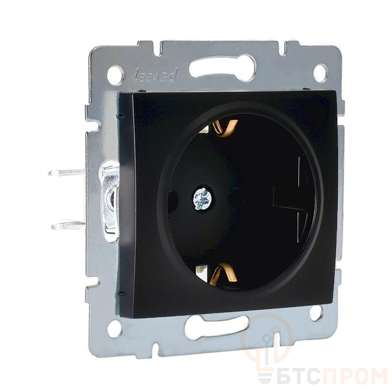 Розетка 1-м СП Karina с заземл. защ. шторки термопласт механизм черн. бархат LEZARD 707-4288-124B фото в каталоге от BTSprom.by