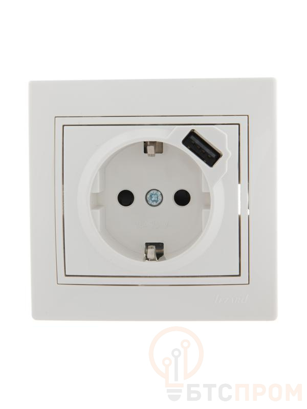 Розетка 1-м СП Mira 16А с заземл. + USB разъем бел. LEZARD 701-0202-181 фото в каталоге от BTSprom.by