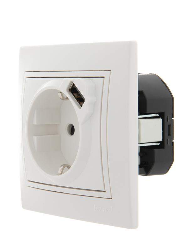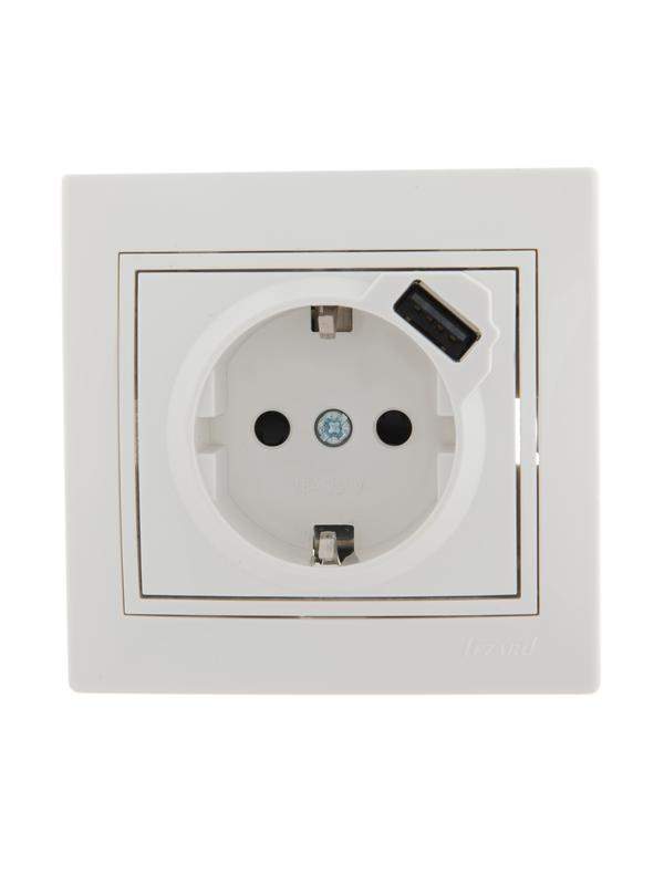 –Розетка 1-м СП Mira 16А с заземл. + USB разъем бел. LEZARD 701-0202-181