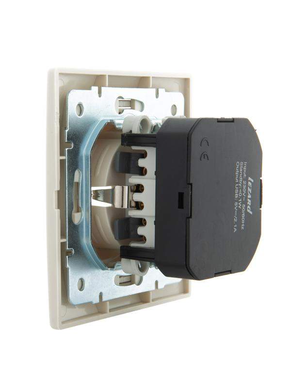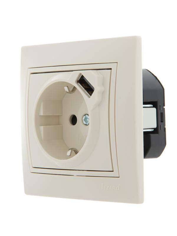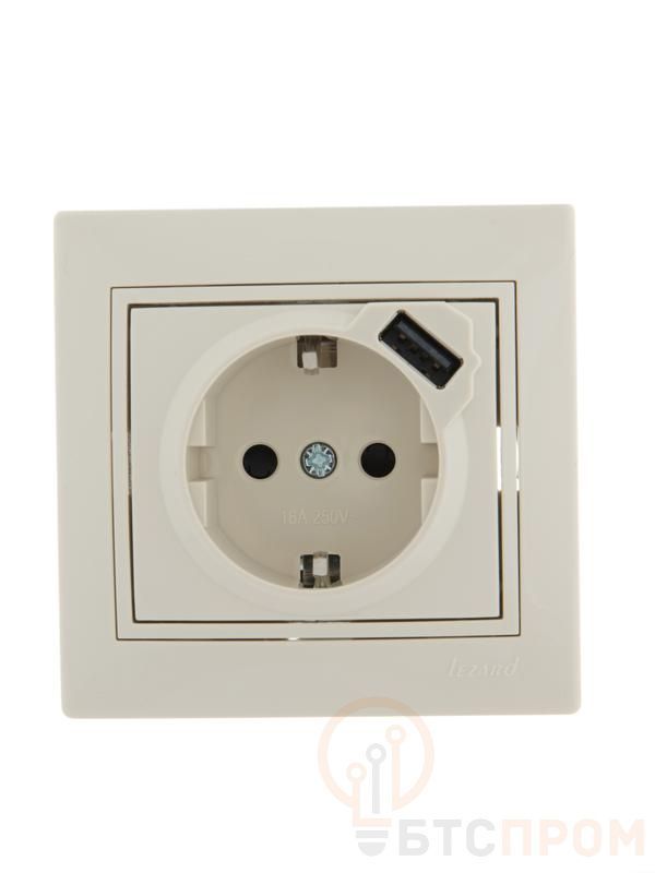 –Розетка 1-м СП Mira 16А с заземл. + USB разъем крем. LEZARD 701-0303-181