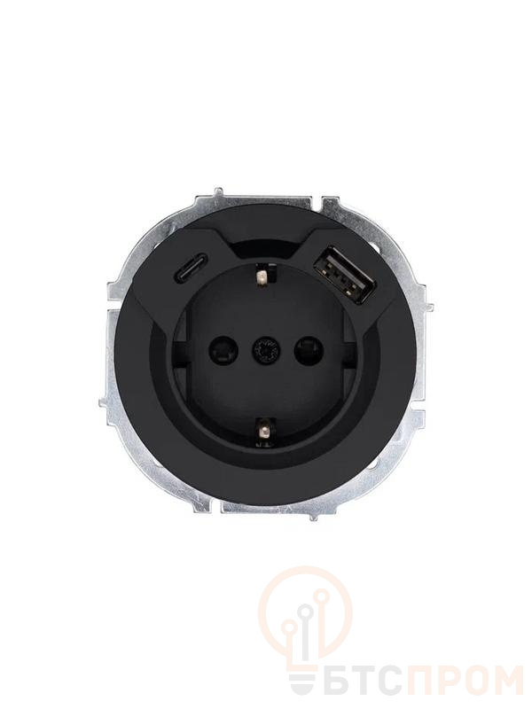 Конструкция устройства включает одну стандартную силовую точку с заземляющим контактом (тип F, "Schuko"), что обеспечивает безопасное подключение мощной бытовой техники. Дополнительно розетка оснащена двумя портами USB, что позволяет напрямую и быстро заряжать мобильные устройства, такие как смартфоны и планшеты, без использования громоздких блоков питания.