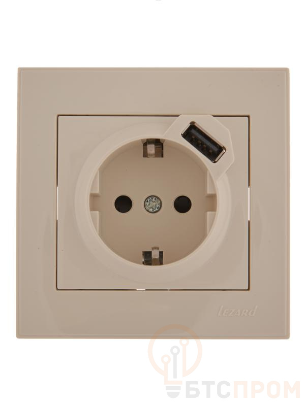 Розетка 1-м СП Rain 16А с заземл. + USB разъем крем. LEZARD 703-0303-181 фото в каталоге от BTSprom.by