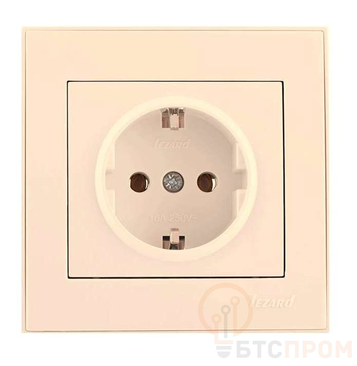 Розетка 1-м СП Rain с заземл. керамика крем. LEZARD 703-0303-122 фото в каталоге от BTSprom.by