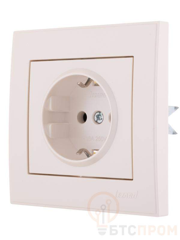 Розетка 1-м СП Rain с заземл. керамика жемчуж./бел. перламутр. LEZARD 703-3030-122 фото в каталоге от BTSprom.by
