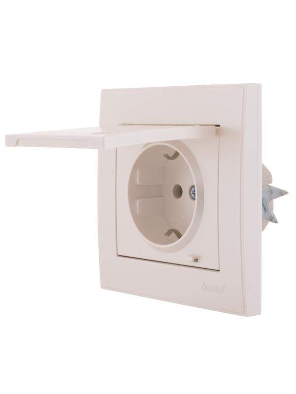 Розетка 1-м СП Rain с заземл. с защ. крышкой керамика жемчуж./бел. перламутр. LEZARD 703-3030-123 фото в каталоге от BTSprom.by