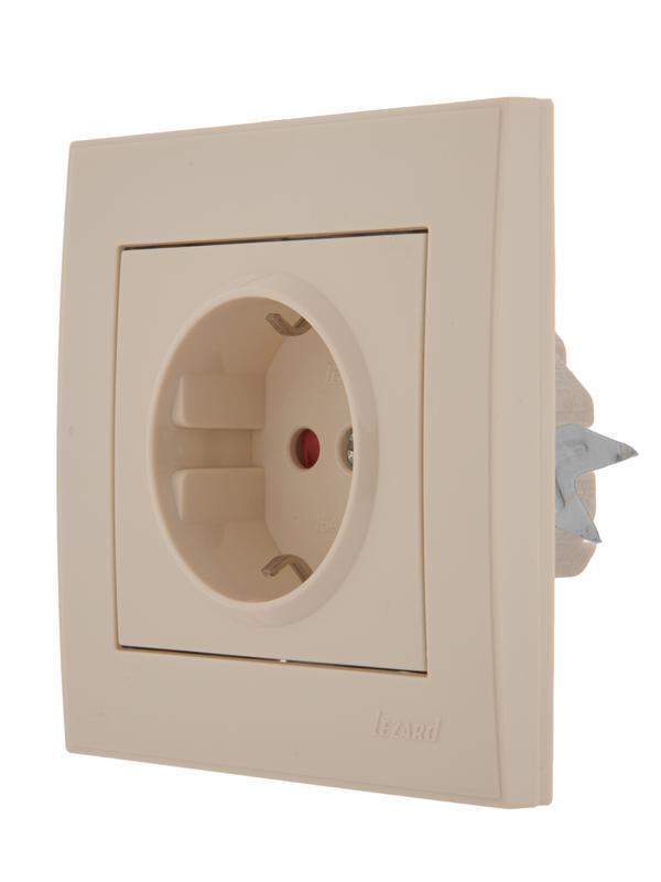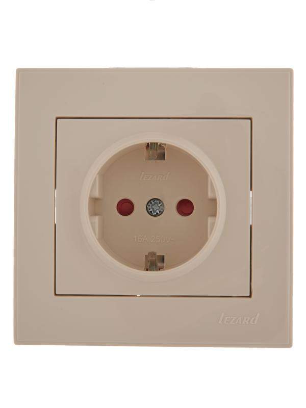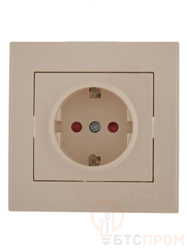 Розетка 1-м СП Rain с заземл. защ. шторки с заземл. керамика крем. LEZARD 703-0303-124 фото в каталоге от BTSprom.by