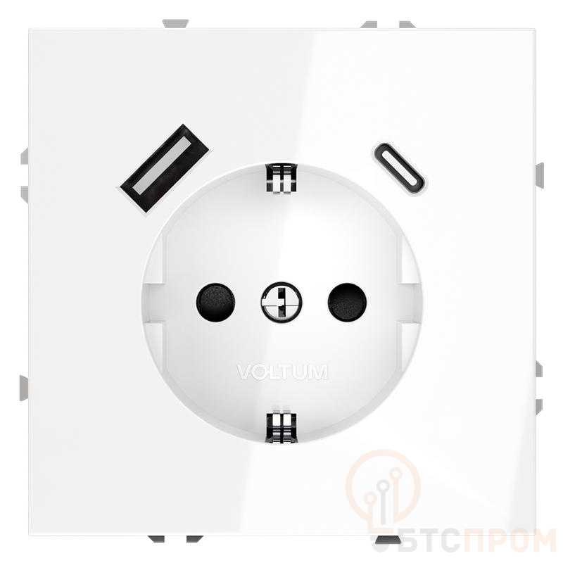 Глянцевый белый корпус легко впишется в любой интерьер. Розетка предназначена для установки в стандартный подрозетник и идеально подходит для жилых комнат, кухонь, гостиниц и офисных помещений, позволяя одновременно подключать бытовые приборы и заряжать мобильные устройства без громоздких адаптеров. Надежный механизм от проверенного бренда Voltum обеспечивает долговечную и безопасную эксплуатацию.