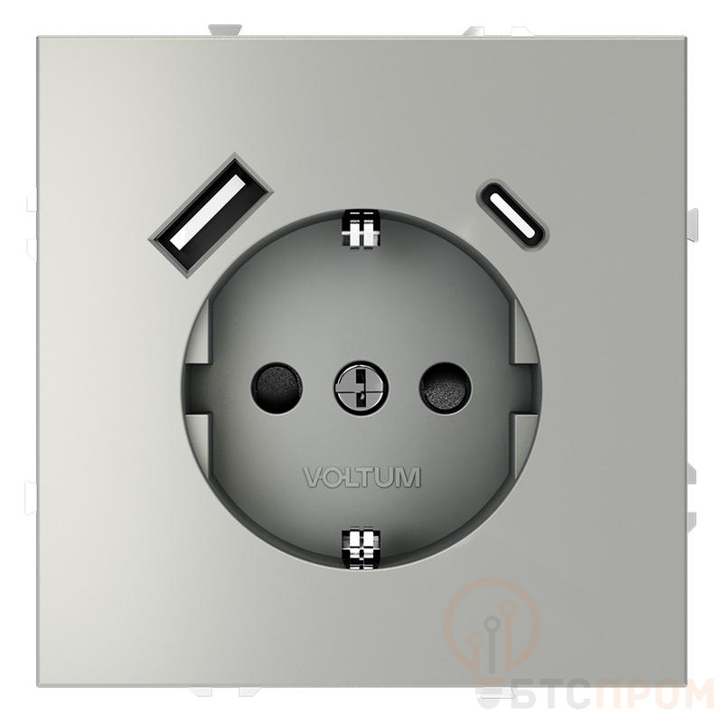 Розетка S70 от Voltum — это современное и надежное решение для организации точек питания в жилых и коммерческих помещениях. Модель VLS040505 сочетает в себе классическую одинарную розетку с заземлением и два порта для быстрой зарядки гаджетов через USB Type-A и Type-C.