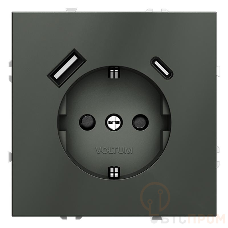 Розетка S70 от Voltum — это современное и надежное решение для организации электроснабжения в жилых и офисных помещениях. Модель VLS040506 оснащена одним посадочным местом стандарта СП (средняя пласть) и сочетает в себе классические силовые разъемы с инновационными зарядными портами.