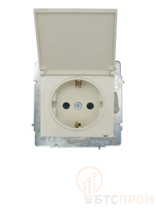 Ключевые характеристики: номинальный ток 16А, степень защиты IP44 (защита от брызг воды и твердых частиц размером более 1 мм), наличие заземляющего контакта. Корпус и крышка изготовлены из ударопрочного ПБТ-пластика, механизм — кремового цвета. Крышка предохраняет контакты от влаги и пыли при неиспользовании.