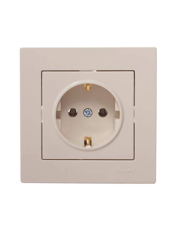 –Розетка 1-м СП Vesna с заземл. ПБТ механизм крем. LEZARD 742-0388-122B