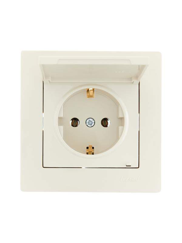 Розетка 1-м СП Vesna с заземл. с крышкой ПБТ механизм кремов. LEZARD 742-0388-123B