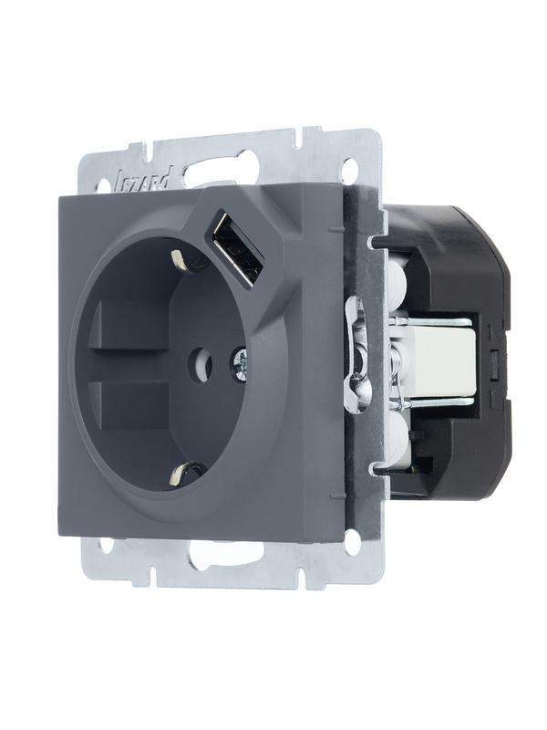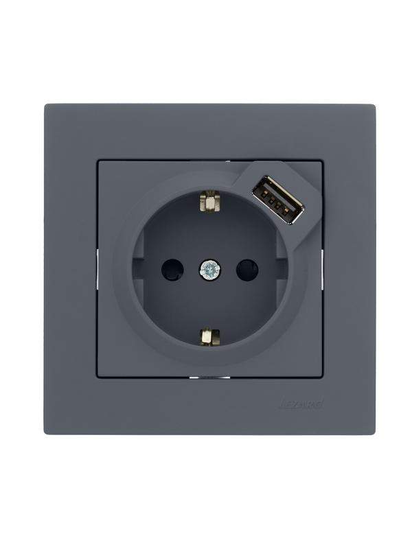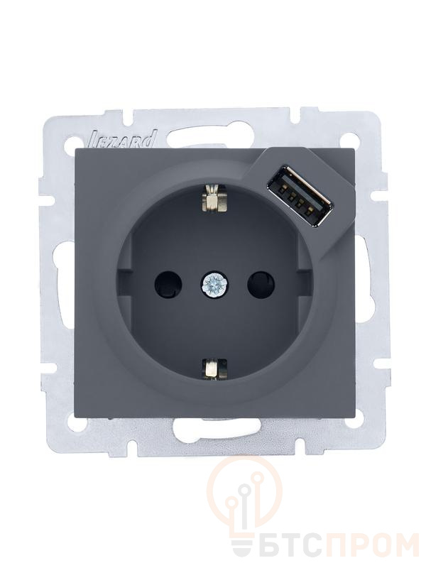 Розетка 1-м СП Vesna с заземл. с заряд. устройством USB механизм графит LEZARD 742-3488-181 фото в каталоге от BTSprom.by