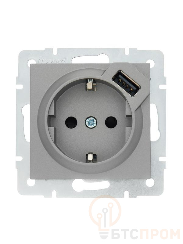 Розетка 1-м СП Vesna с заземл. с заряд. устройством USB механизм платина LEZARD 742-3588-181 фото в каталоге от BTSprom.by