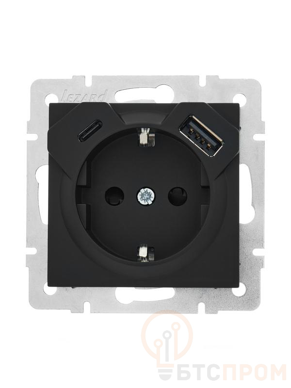 Розетка 1-м СП Vesna с заземл. с заряд. устройством USB + тип C механизм черн. бархат LEZARD 742-4288-181TC