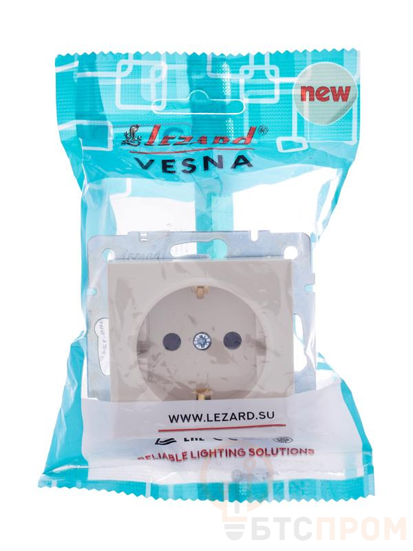 Розетка 1-м СП Vesna с заземл. защ. шторки ПБТ механизм крем. LEZARD 742-0388-124B фото в каталоге от BTSprom.by