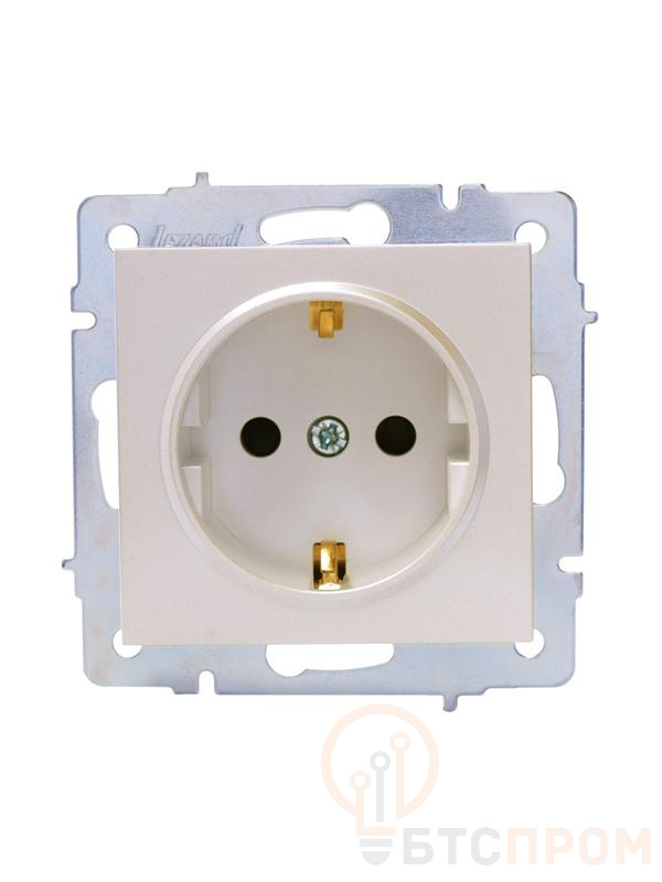 Розетка 1-м СП Vesna с заземл. защ. шторки ПБТ механизм жемчуж./бел. перламутр LEZARD 742-3088-124B фото в каталоге от BTSprom.by
