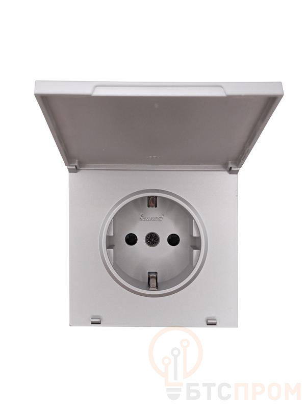 Розетка 1-м СП ZIMA 16А IP44 с заземл. с крышкой ПБТ безвинтовой зажим/клемма механизм сер. матов. LEZARD 704-7488-123BPCH