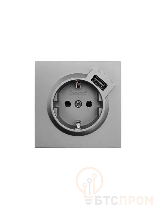 Розетка 1-мест. с/з+USB разъем СП ZIMA IP20 сер. матов. LEZARD 704-7488-181 фото в каталоге от BTSprom.by