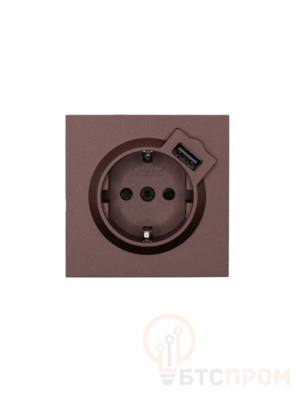 Розетка 1-мест. с/з+USB разъем СП ZIMA IP20 шоколад LEZARD 704-7388-181 фото в каталоге от BTSprom.by