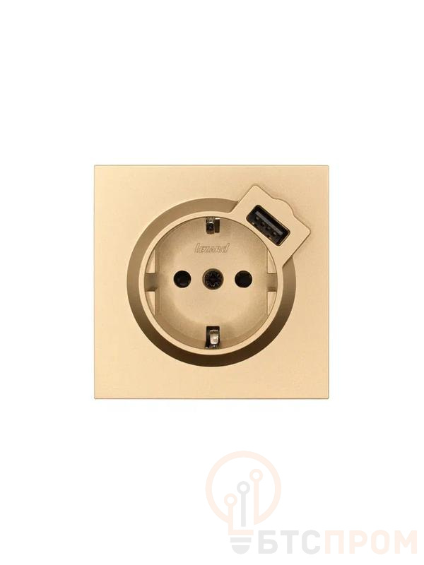 Розетка 1-мест. с/з+USB разъем СП ZIMA IP20 зол. LEZARD 704-3688-181 фото в каталоге от BTSprom.by