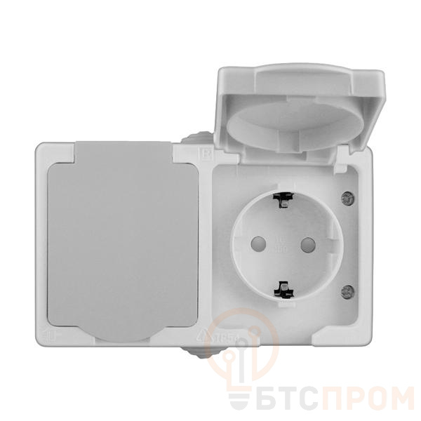 Розетка 2-м Аллегро горизонт. с заземл. защ. шторки с крышкой IP54 сер. UNIVersal 1272 фото в каталоге от BTSprom.by
