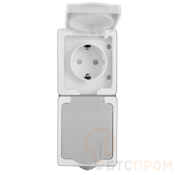Розетка 2-м Аллегро верт. с заземл. защ. шторки с крышкой IP54 сер. UNIVersal 1275 фото в каталоге от BTSprom.by