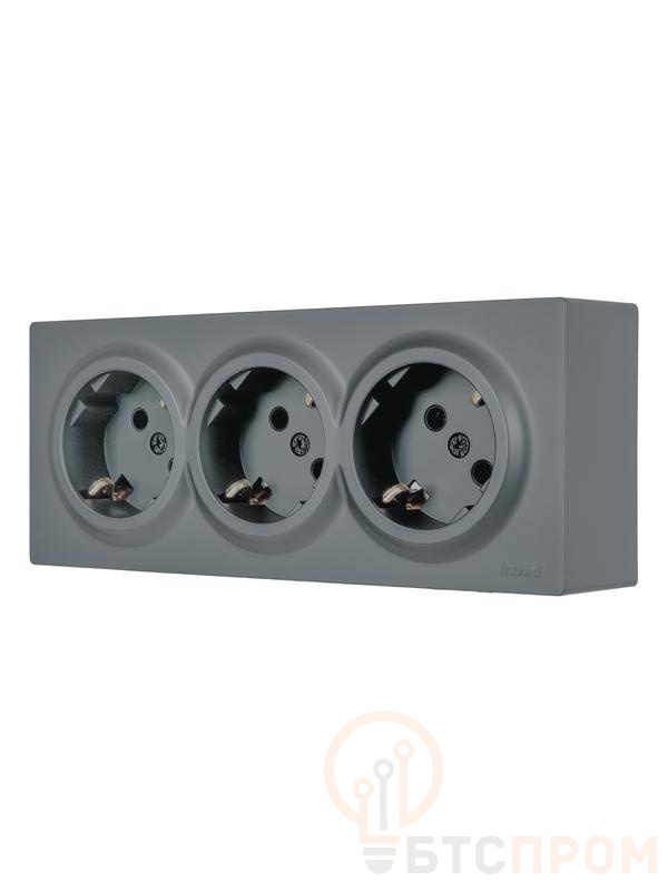 Розетка трехместная LETO от бренда LEZARD — это надежное и стильное решение для организации электроснабжения в жилых и коммерческих помещениях. Модель 752-3400-127BUP выполнена в строгом графитовом цвете, который отлично вписывается в современные интерьеры.