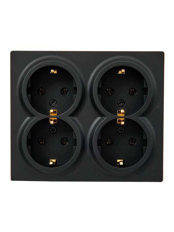 Розетка 4-м ОП LETO с заземл. закрытый корпус ПБТ черн. бархат LEZARD 752-4200-127BDP фото в каталоге от BTSprom.by