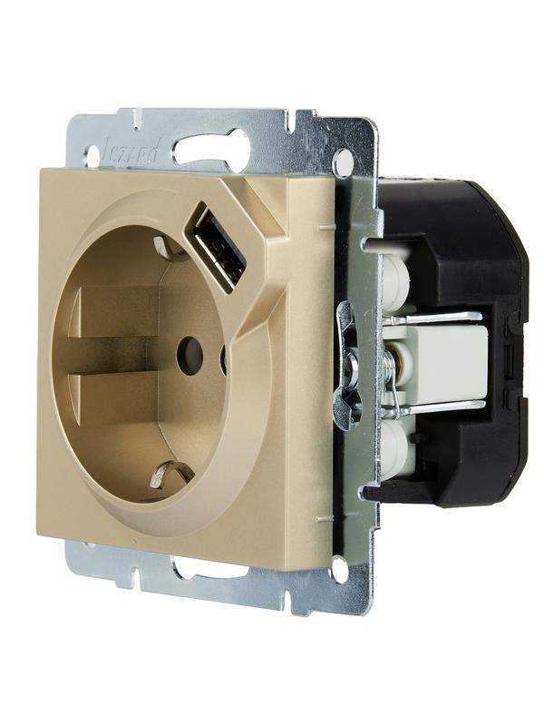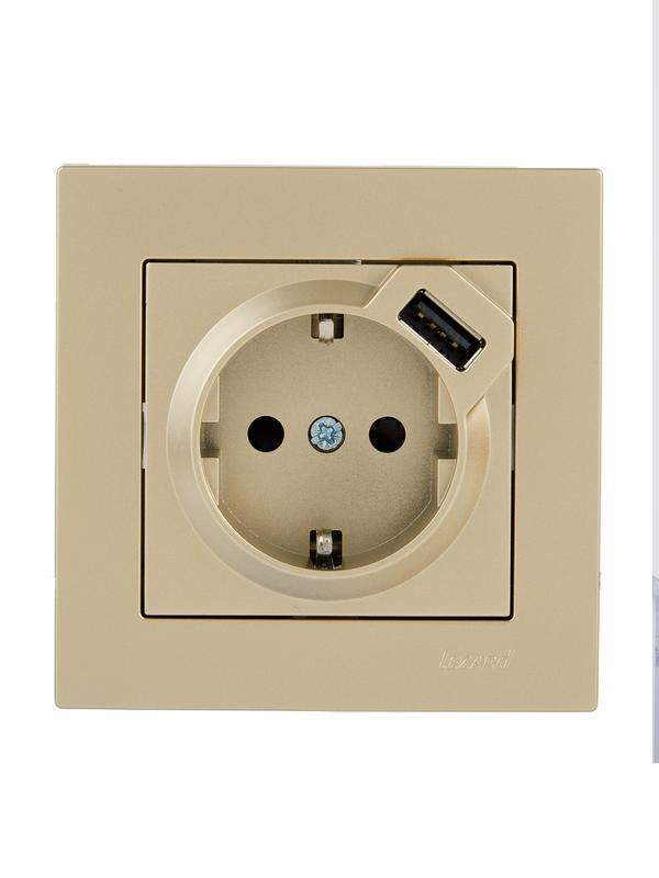 Розетка с заземл. + USB разъем VESNA зол. LEZARD 742-3688-181 фото в каталоге от BTSprom.by