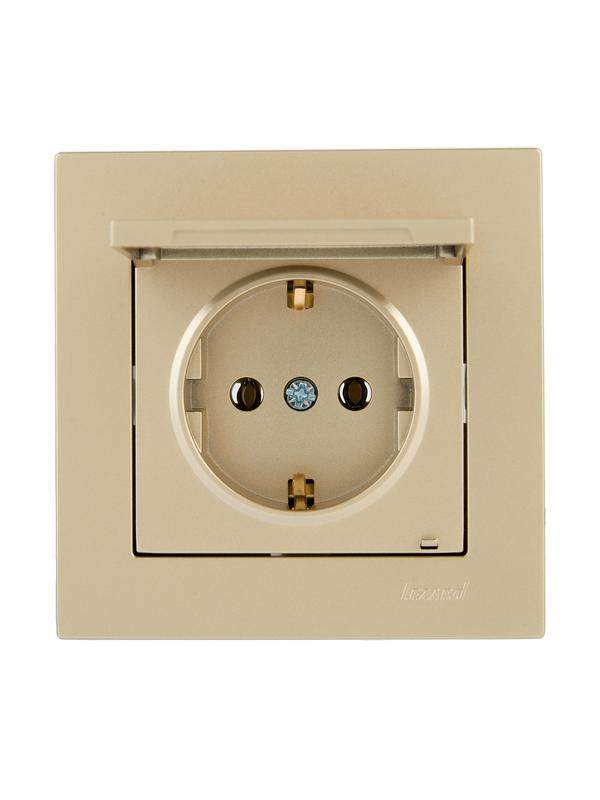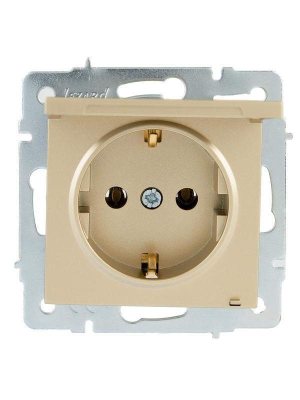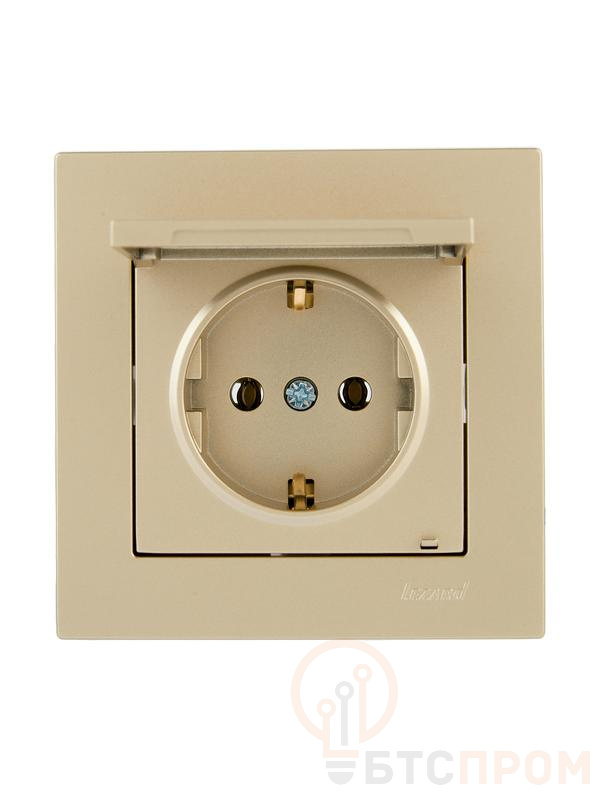 Розетка с заземл. VESNA с крышкой ПБТ зол. LEZARD 742-3688-123B фото в каталоге от BTSprom.by