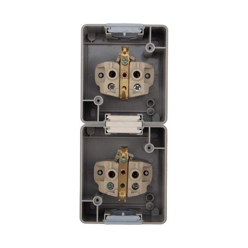 Накладной вертикальный блок из двух розеток предназначен для организации электроснабжения. Подходит для установки в сухом помещении, а также во влажной и пыльной среде. Защитная крышка на лицевой поверхности защищает розетку от попадания брызг воды. Блок отлично подойдет для дачи, ванной комнаты, бассейна и улицы при наличии навеса, защищающего от прямого попадания влаги. С обеих сторон блока находятся ступенчатые герметичные вводы, которые позволяют адаптировать изделие под различные диаметры кабеля. Корпус механизма розетки выполнен из абсолютно негорючего материала – керамики. Имеет контакт заземления, который обеспечивает безопасность присоединяемых устройств. Благодаря лаконичной форме корпуса блок с легкостью впишется в любой интерьер. Сечение проводников: 1,5-2,5 мм2.