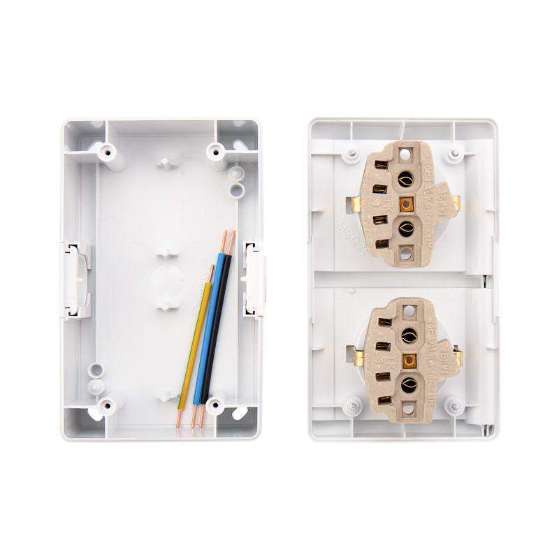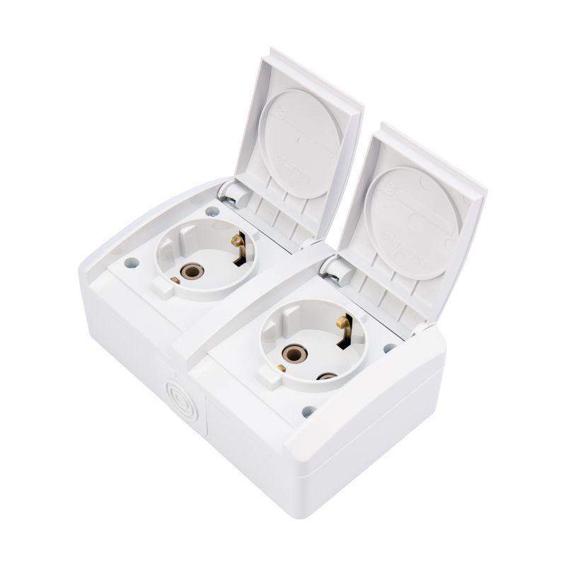 Накладной горизонтальный блок из двух розеток предназначен для организации электроснабжения. Подходит для установки в сухом помещении, а также во влажной и пыльной среде. Защитная крышка на лицевой поверхности защищает розетку от попадания брызг воды. Блок отлично подойдет для дачи, ванной комнаты, бассейна и улицы при наличии навеса, защищающего от прямого попадания влаги. С обеих сторон блока находятся ступенчатые герметичные вводы, которые позволяют адаптировать изделие под различные диаметры кабеля. Корпус механизма розетки выполнен из абсолютно негорючего материала – керамики. Имеет контакт заземления, который обеспечивает безопасность присоединяемых устройств. Благодаря лаконичной форме корпуса блок с легкостью впишется в любой интерьер. Сечение проводников: 1,5-2,5 мм2.
