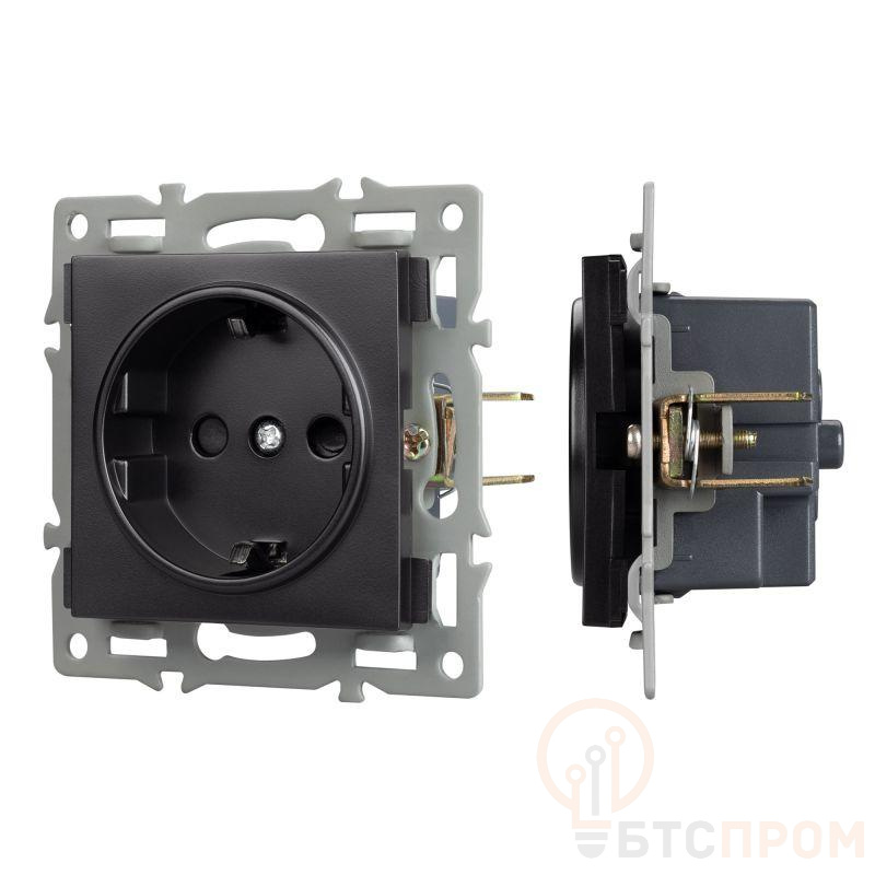 Механизм розетки с заземлением 1 пост, с суппортом из алюминия. Цвет - черный. Степень пылевлагозащиты - IP20. Устанавливается в стандартный круглый подрозетник 220V (Арт.044895). Рабочее напряжение 110-250V. Макс. ток нагрузки 16А. Габаритные размеры: длина 74 мм, ширина 74 мм, высота 37 мм. Гарантийный срок 10 лет.