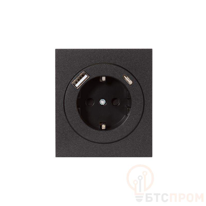 Розетка 1-м СП STRONG MIELE 16А с заземл. защ. шторки с USB A+C быстрой зарядки 5В/3А антрацит Kranz KR-78-0704-5