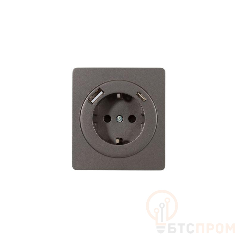 Розетка 1-м СП ROUND MIELE 16А с заземл. защ. шторки с USB A+C быстрой зарядки 5В/3А титан Kranz KR-78-0704-2