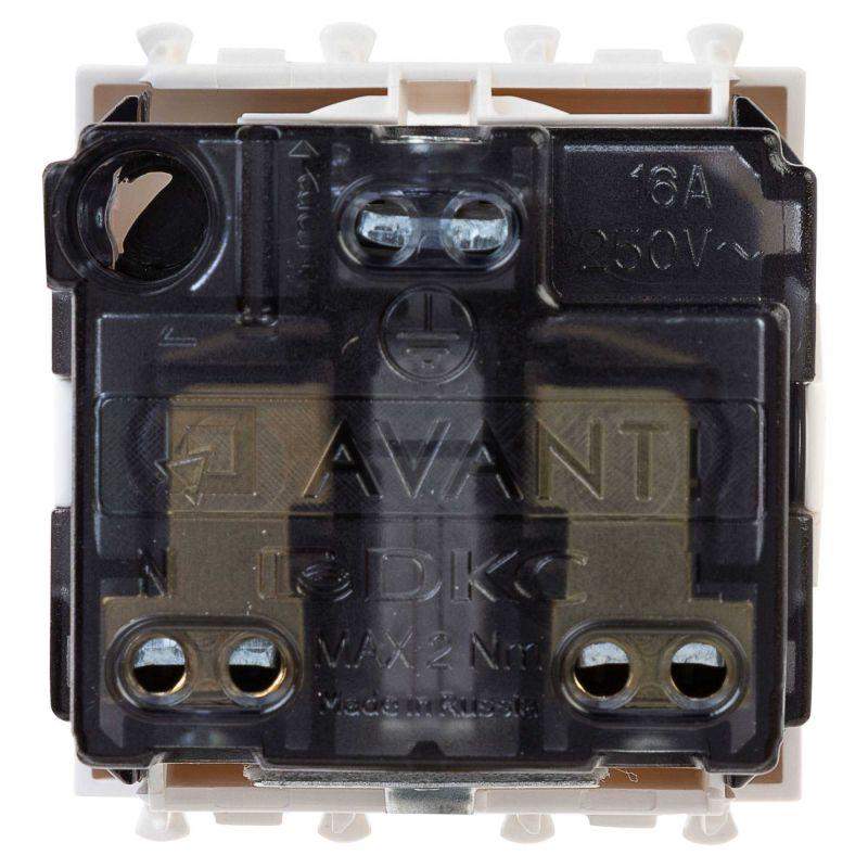 Розетка электрическая с заземлением, со шторками и возможностью установки подсветки, модульная. Предназначена для монтажа в систему пластиковых коробов "In-liner Front" и систему организации рабочих мест "Sotto" при помощи рамок-суппортов и каркасов "Avanti" (код 4400912 и т.д.). Характеристики: диаметр отверстий для ввода кабелей – 3 мм (по 2 отверстия на одну клемму); винтовые зажимы; защитные шторки; шаблон для зачистки кабеля – 11 мм; номинальный ток – 16 A; номинальное напряжение – 230 В; фиксация в подрозеточные коробки глубиной не менее 45 мм при помощи каркаса с лапками (код 4400802) и саморезов. 2 модуля. Цвет: "Белое облако". Производитель оставляет за собой право вносить во внешний вид изделия изменения, которые не влияют на его функционал, безопасность и надежность.