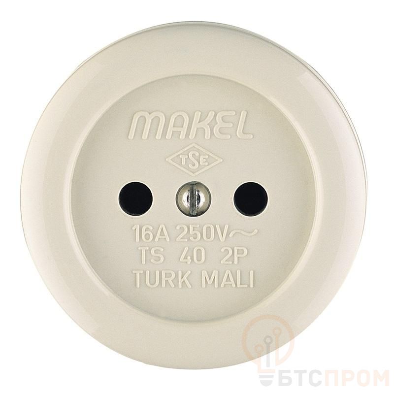 Розетка 1-м ОП 16А IP20 круглая без заземл. керамика беж. Makel 16012 фото в каталоге от BTSprom.by