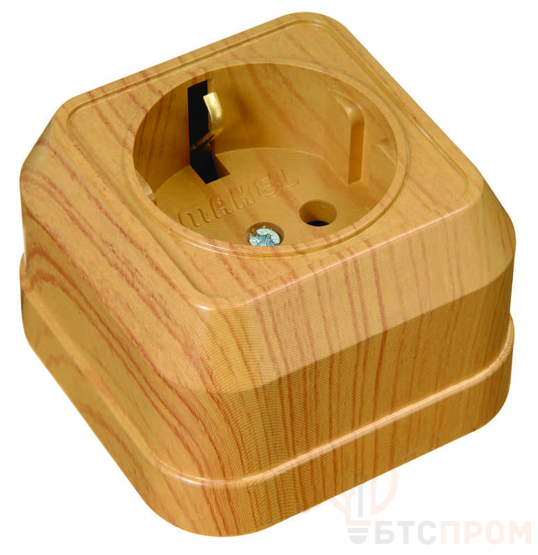 Розетка 1-м ОП 16А IP20 квадрат. с заземл. дуб Makel 45308 фото в каталоге от BTSprom.by