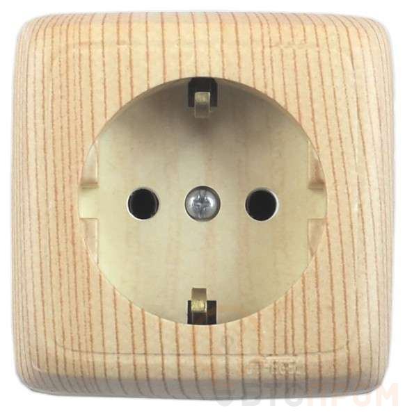 Ключевой особенностью является изолирующая пластина, выполненная в стильном декоративном покрытии «сосна». Это позволяет розетке гармонично вписаться в интерьеры, оформленные в эко-стиле, скандинавском или деревенском духе. Степень защиты IP20 указывает на предназначение для использования внутри сухих помещений.