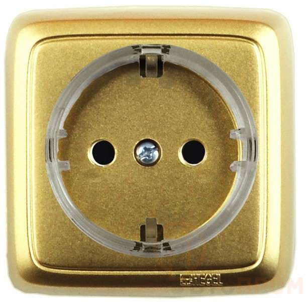 Розетка 1-м ОП Альфа 16А IP20 250В с заземл. защ. шторки с изолир. пластиной (стакан) зол. HEGEL РА16-174-07